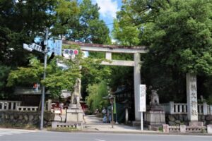 落葉した木々がある内牧公園