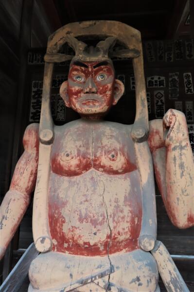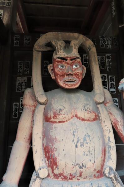 仁王門は単層茅葺きの簡素なもので、門の両袖に仁王像が安置されております。子供にゆかりがあることから仁王様も子供仕立てにしたものか、思わず笑ってしまうような顔をしております。