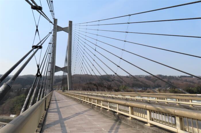 三代目秩父橋、手前に見える橋脚が初代の秩父橋の橋脚遺構として残されています