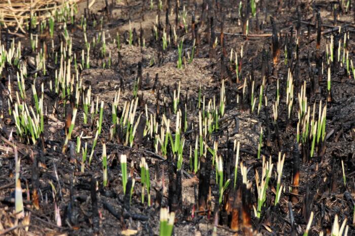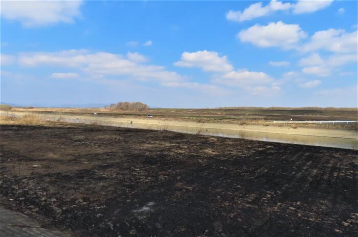3月4日(土曜日)のヨシ焼から約二週間経ちましたのでそろそろ新芽が出て来るころかなと思い観察を兼ねて散策に出掛けて来ました、未だ焦げた臭いがしますが着実に新芽が吹いていました、渡良瀬遊水地は絶滅危惧種など貴重な植物の宝庫となっていますのでこれからは楽しみな季節を迎えます、運よくウグイスの初音を聞く事も出来ました。