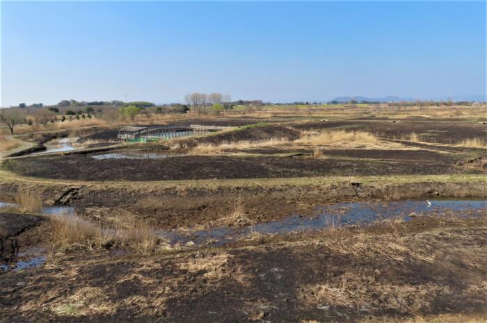ヨシ焼きされたヨシ原浄化施設西エリア