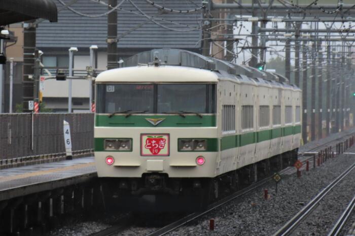 令和3年3月のダイヤ改正で定期運行から引退した「185系直流電車」を使用した、「2023 冬のとちぎ観光キャンペーン」のフィナーレと「鉄道開業 150 年」に合わせて、臨時特急「とちぎ1号」が本日専用ヘッドマークを掲出して運転されました、近々廃車となってしまいますが登場から約40年間走り続けていますが見納めと思い新白岡駅ホームから写真を撮っておきましたのでご紹介いたします。尚、先頭車両には懐かしい国鉄時代の「JNR」のロゴマークが残されていました。