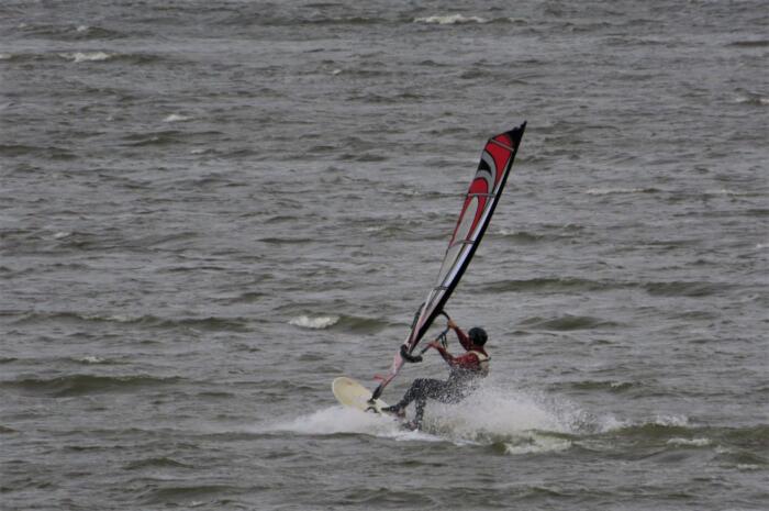 本日の強風を満喫しているウィンドサーフィン