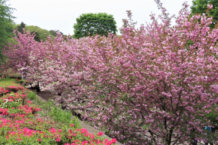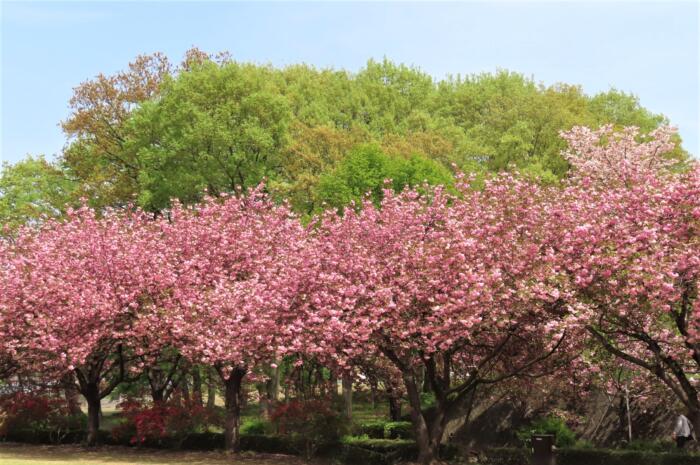 アイキャッチ画像は見頃を迎えた天平の丘公園の八重桜