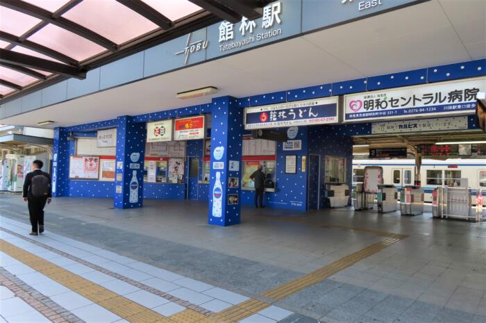 館林市内に有るカルピス群馬工場に因んで水玉模様になっている「館林駅」