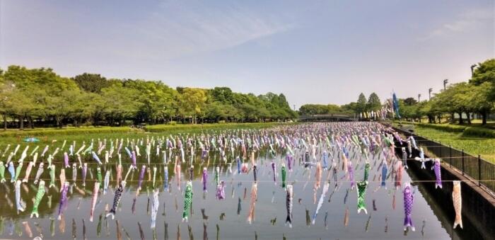館林こいのぼりの里まつりに因んでこいのぼりを飾られている「鶴生田川」