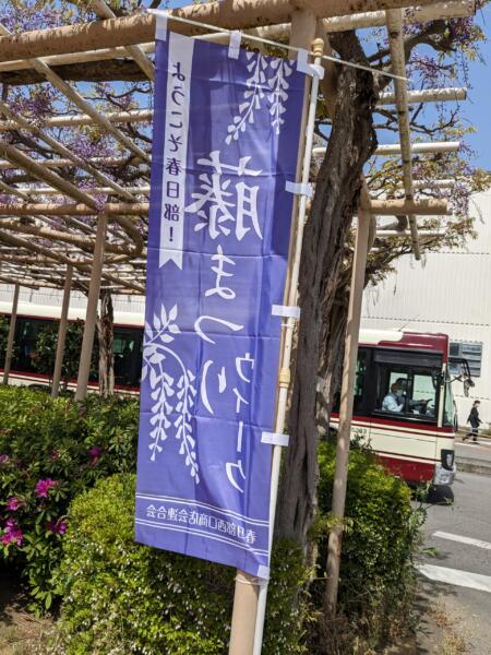 まだチャリには乗れないんで 杖を頼りに雑用を片付けにO_o 今日!ノボリを飾ってましたね。◕‿◕。 まだまだ藤は咲いては居ない感じですね 今年は、昨年短く切り詰めたせいか 花房が短い感じですね