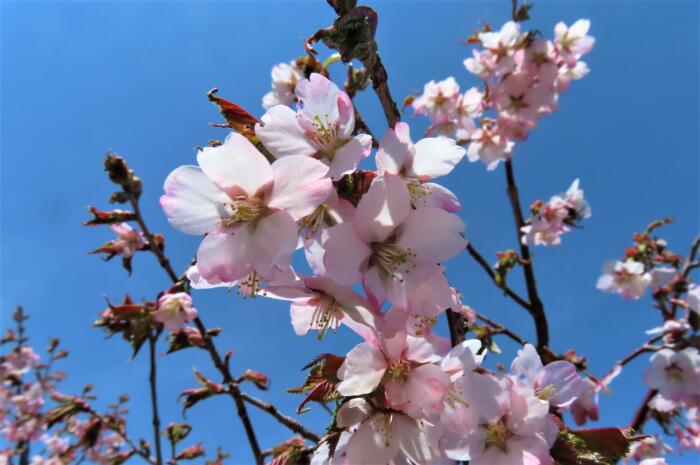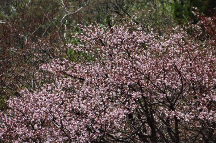 高嶺桜について北海道、南千島、サハリン南部に分布し、南限は本州奈良県です。高緯度では低地に自生しますが、本州では亜寒帯に自生します。「峰桜」とも呼ばれています、花は白色から紅紫色から紅紫色のものまで多様です。