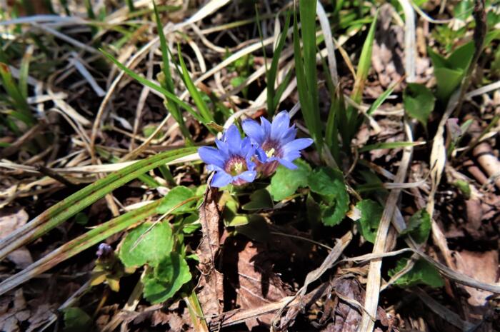 牛首から日の出平へ至る稜線上に咲くフデリンドウ