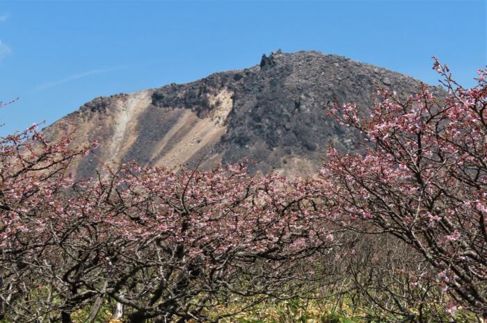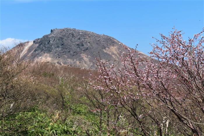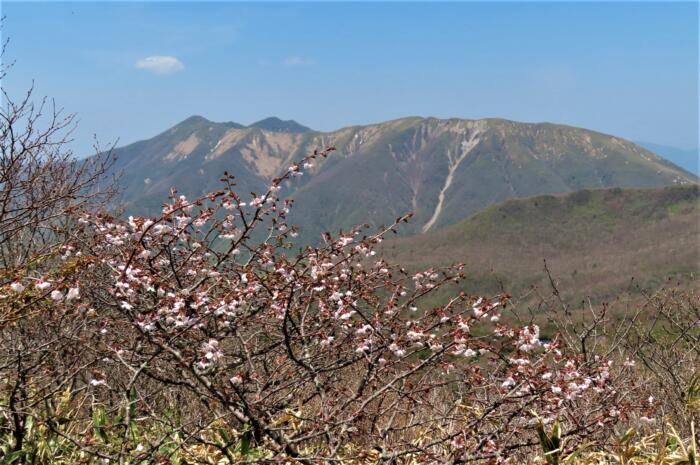 高嶺桜(峰桜)越しに那須茶臼岳を望む