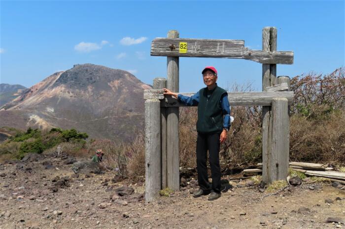 那須茶臼岳を背景に南月山(1775.7m)山頂にて