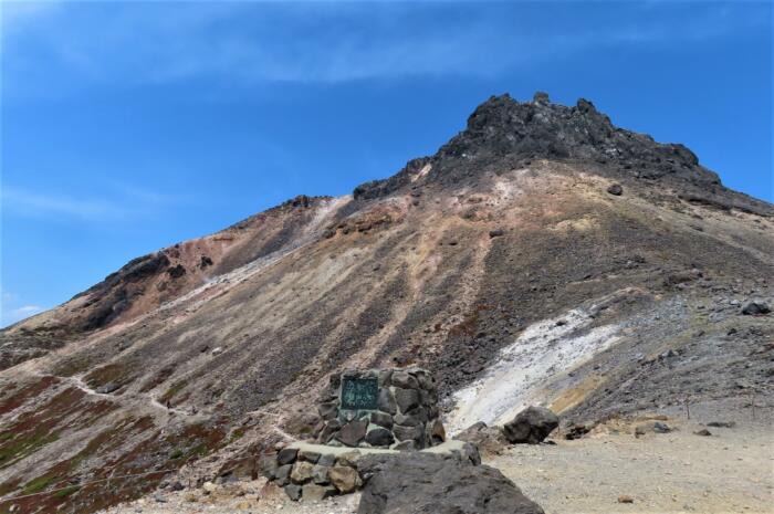 牛首(約1665m)から那須茶臼岳山頂溶岩ドームを望む