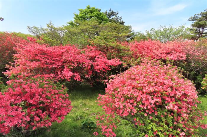 高層天気も確認しながら天候の安定している昨日那須連峰の日の出平付近に自生群生している「高嶺桜 (峰桜)」が見頃を迎えて来たので登山を兼ねて日帰りで行って来ました、麓では緑溢れる美しい那須高原でしたが稜線まで上がると若葉が芽吹き始めたばかりで季節の変化を味わいながら楽しんで来ました。今回は多少時間に余裕がありましたので八幡ツツジ園地に立寄り満開の山つつじも鑑賞してきました。