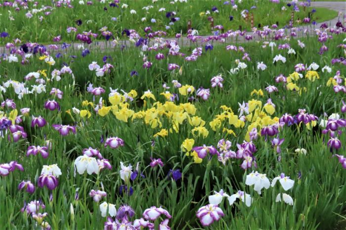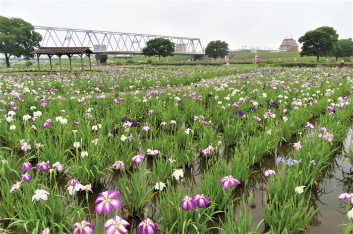 江戸川区が回遊式の庭園として造られた「小岩菖蒲園」約4,900平方メートルに約50,000本の花菖蒲が咲き誇ります