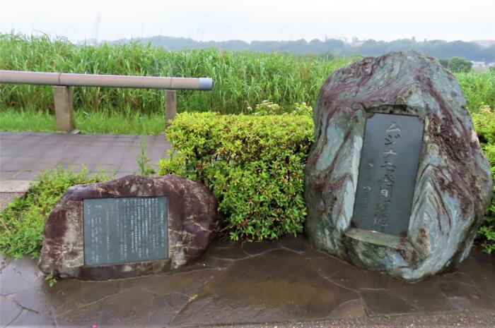 牧野富太郎博士が食虫植物「ムジナモ」を日本で初めて発見した地の記念碑