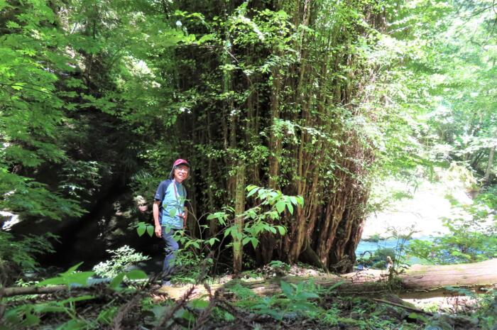 安谷川渓谷に沿う明ヶ指の大カツラ