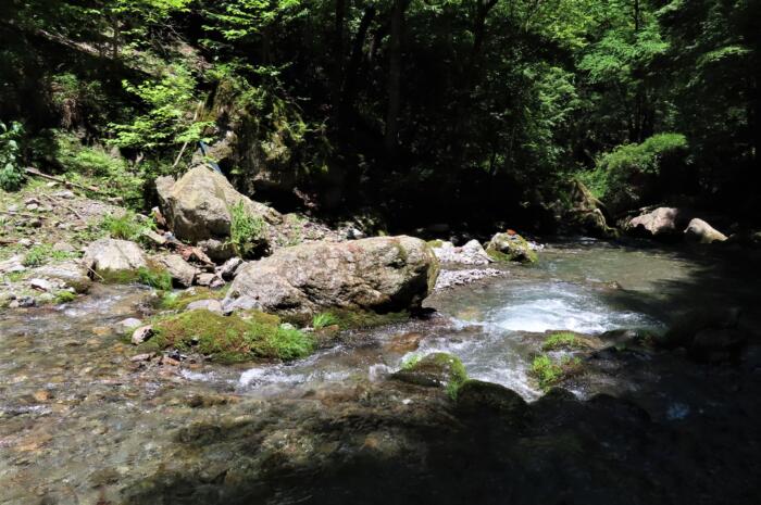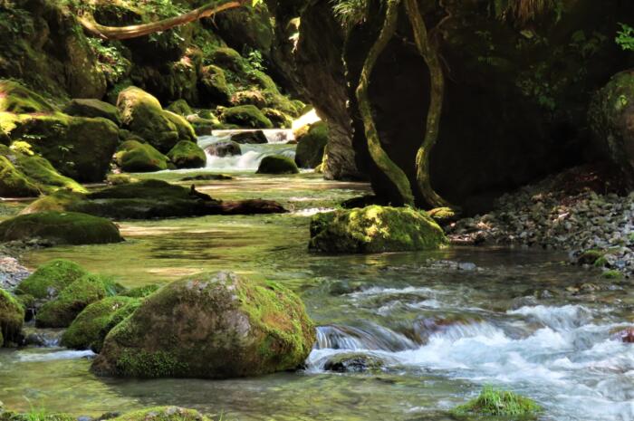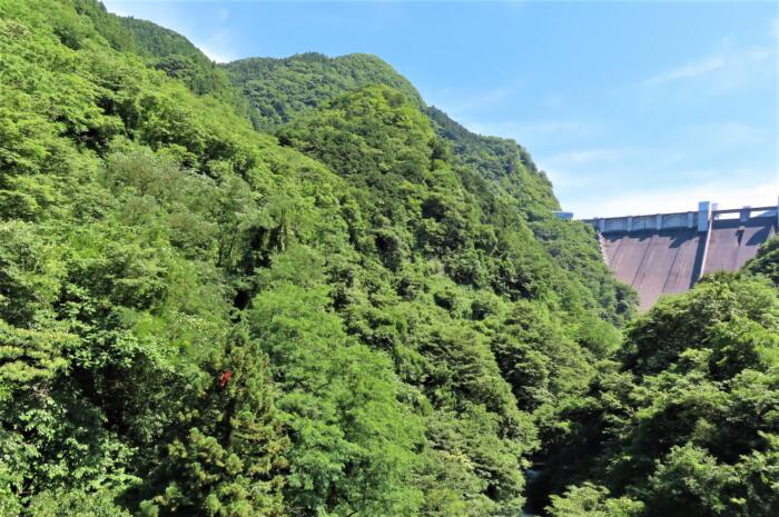 緑に覆われている浦山ダム下流にある「浦山渓谷」