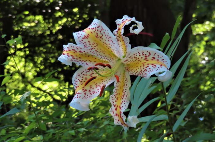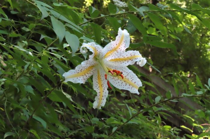 ヤマユリ(山百合)は日本固有種で百合の中では一番大きい花を付けます、花言葉は「容姿端麗」です