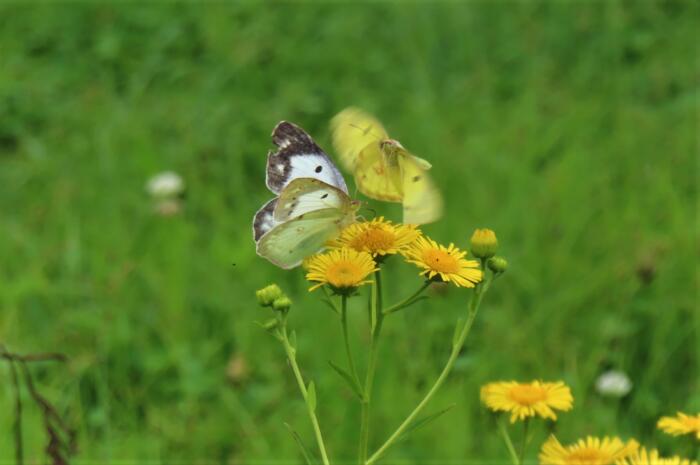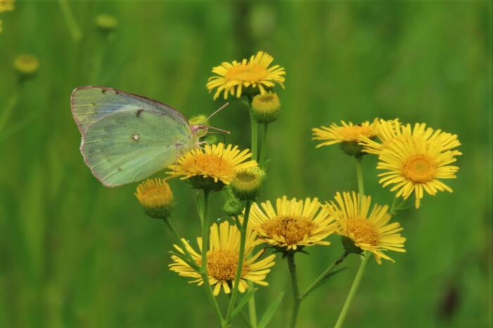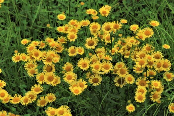 アイキャッチ画像はホソバオグルマの群生地で講師の説明を聞き入る参加者