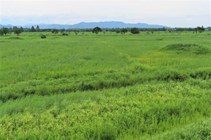 ヨシが茂ったヨシ原浄化施設より大平山系を望む