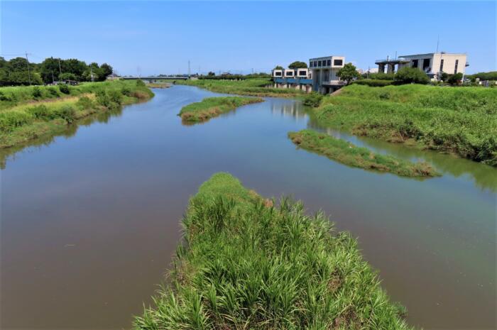 外野橋より中川と権現堂川(水門)の合流地点を望む