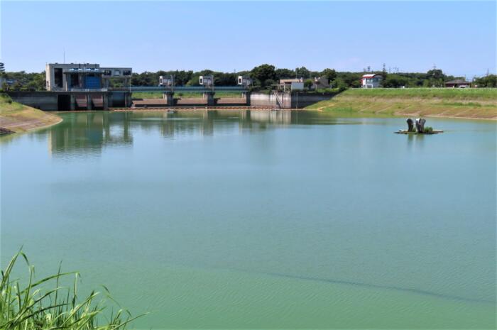 五霞町側より行幸給排水機水門を望む、因みに行幸湖はダムと同じ扱いになります