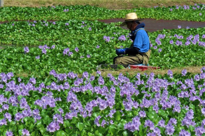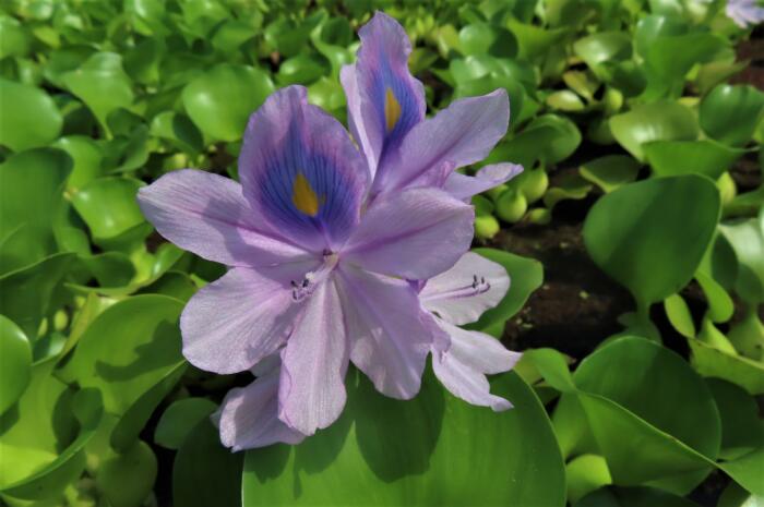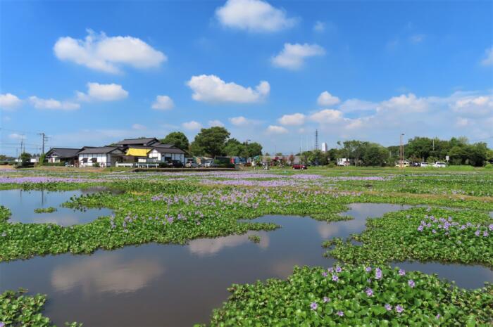 加須市(旧大利根町)の「道の駅童謡の里おおとね」に隣接する休耕田に栽培されている「ホテイアオイ(布袋葵)」が見頃を迎えて来たので写真を撮り行って来ましたのでご紹介いたします。薄紫色の花と艶のある緑の葉が特徴です、花言葉は幸福な時間になります。因みに別名「ウォーターヒヤシンス」と言われています。