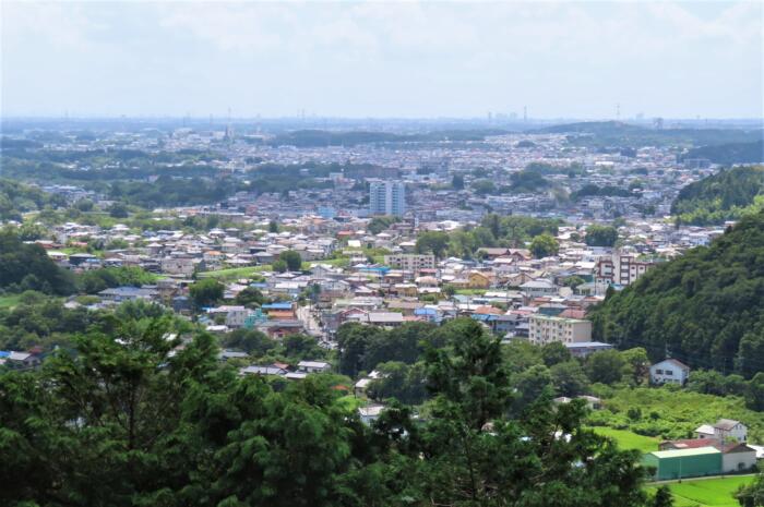 弘法山山頂より越生町中心部越しに都心方面を望む