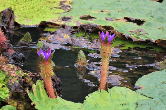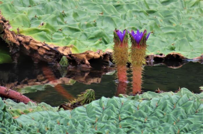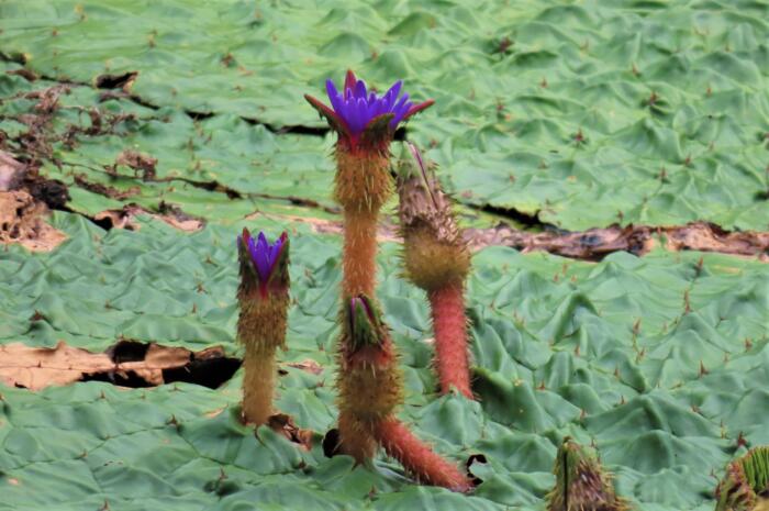 以前ご紹介した通り絶滅が心配されている水生植物です、子供が葉の上に載っても沈まないと言われるオオオニバス(大鬼蓮)と同属の花です