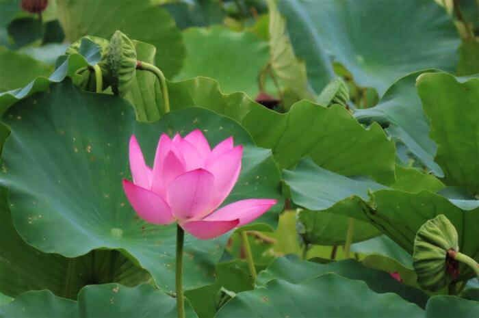 行田市古代蓮の里に保護されている「オニバス」が見頃を迎えたので撮影と観察を兼ねて観に行って来ました、数年前に加須市の自生地から移植された苗が今や順調に生育しており今や加須市の自生地よりも元気よく育っています。合わせて古代蓮会館展望室から田んぼアートも観て来ました。