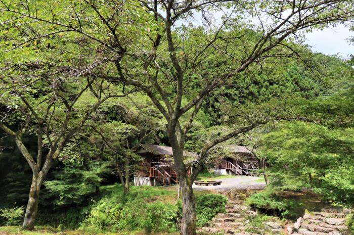 出流ふれあいの森に建つ宿泊コテージ