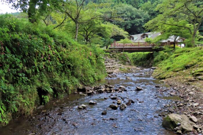 出流ふれあいの森に流れる出流川 川の両岸に秋海棠は咲いています
