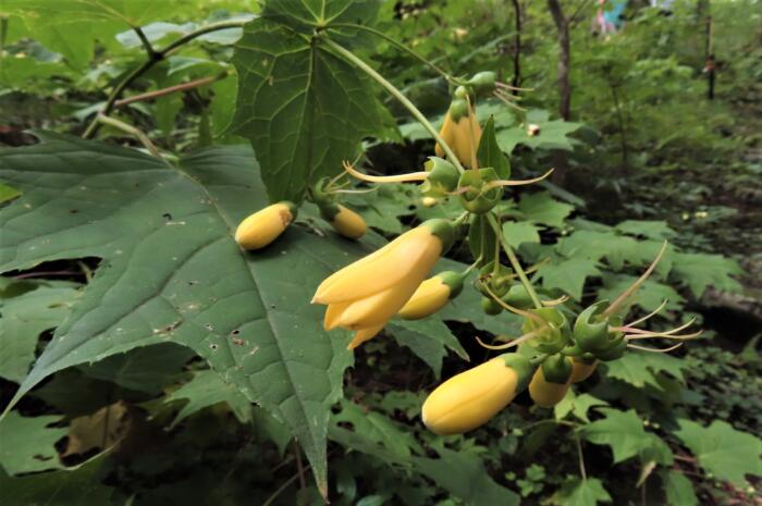 日本固有種で、アジサイ科キレンゲショウマ属の多年草で、本花だけで1属1種となる貴重な植物です。現在環境省のレッドリストでは、絶滅危惧II類(VU)に登録されている。NHK連続テレビ小説(朝ドラ)『らんまん』に登場した田邊教授のモデルとなった矢田部良吉帝国大学(現東京大学)教授が学名を付けた事でも最近は知られるようになりました。