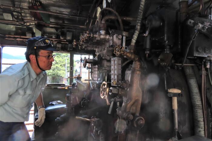 パレオエクスプレスの運転室、バルブが沢山ですね