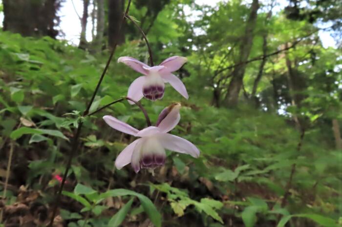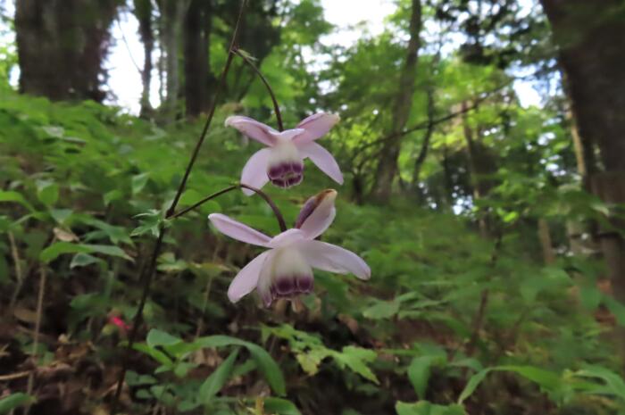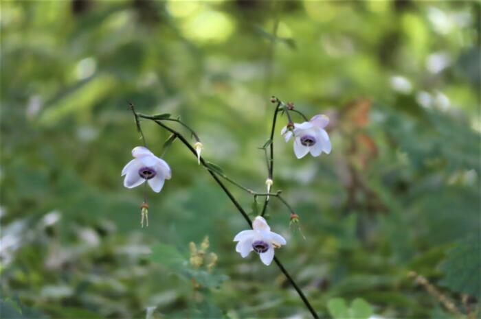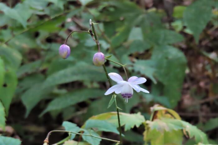 薄紫色の花を、うつむき加減に咲かせるレンゲショウマのお花、その可憐な姿から「森の妖精」と称されます。キンポウゲ科レンゲショウマ属