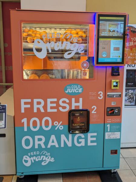 生絞りのオレンジジュース 自販機と言うのかな? 自動制作機?残念ながら試して 無いです(╯︵╰,) 時間を作って試してみたい と思ってます きになります