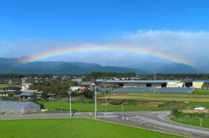 新幹線で移動中に現れた虹