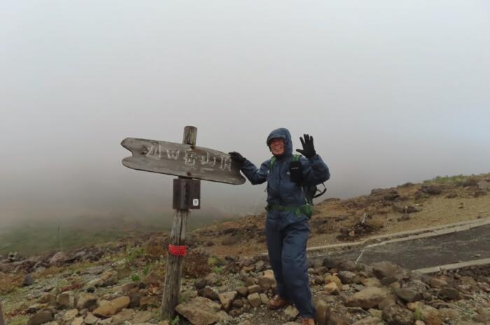 刈田岳山頂(1757m)標識にて
