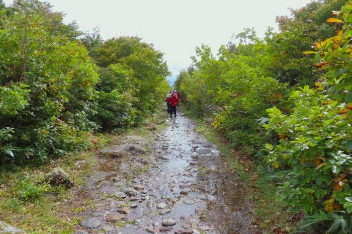 雨の後の為水が流れる栗駒山中央登山ルート
