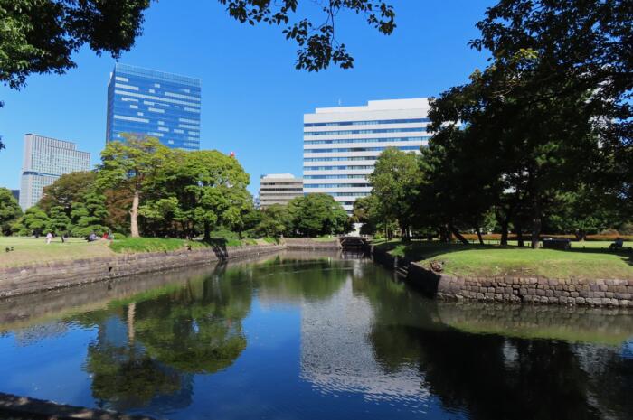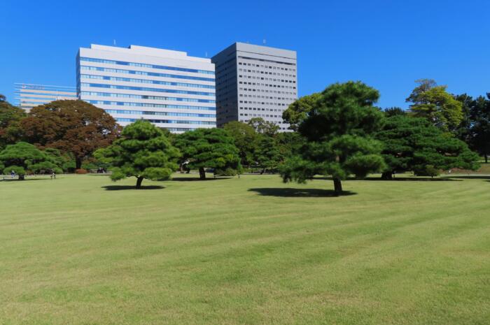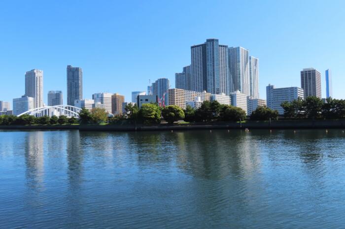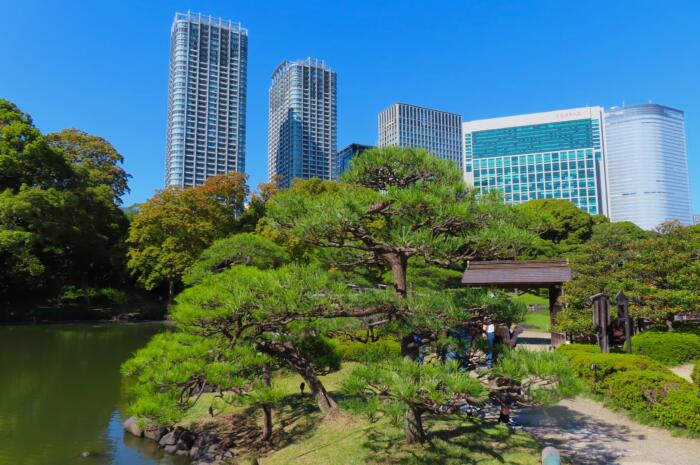 アイキャッチ画像は潮入の池越しに汐留のビル群を望む