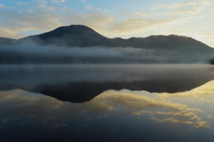 鳥居峠より静かに佇む「覚満淵」と「大沼」を望む