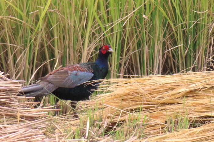 午前中にお散歩をしていたら何と雄キジに遭遇、繁殖期は縄張りを見張るために動き回る雄キジですが、この時期は静かに草むらなどで暮らしている為出逢えることが少なくなります。 アイキャッチ画像は稲刈りの済んだ田んぼにいた雄雉 雄…