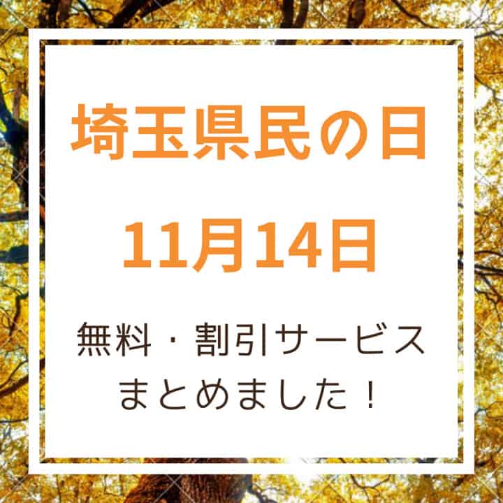 11月14日は皆様ご存じと思いますが埼玉県民の日です、今年も様々な特典が御座いますので下記ご案内いたしますのでご利用下さい。
