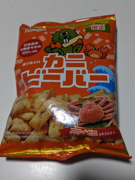 微妙なネーミングO_o 目立つ!ーー手にする!ーー買う!! と考えると 分かりやすいと合わせて なかなかのネーミングなんでしょうね 味は確かにカニの味ですね