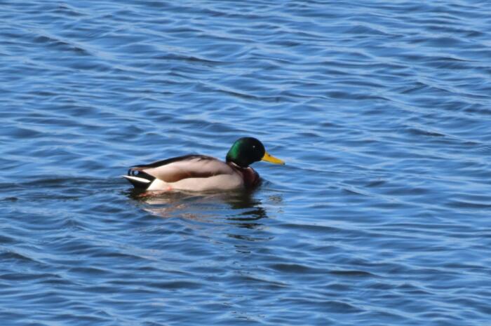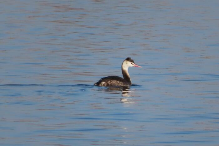 谷中湖中の島に設置されている野鳥観察台にて主にカモ類を観察中