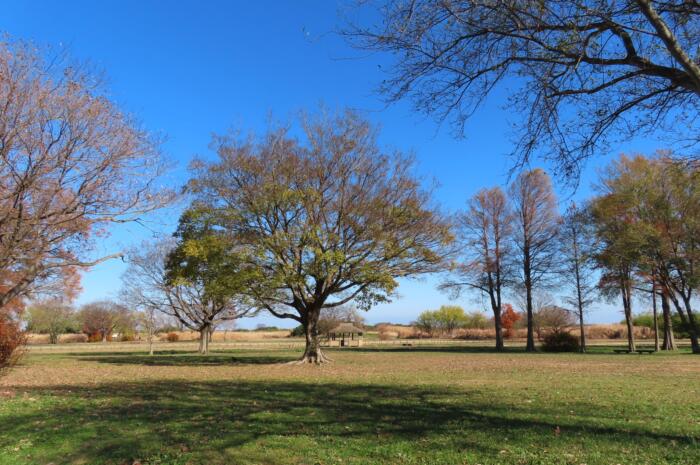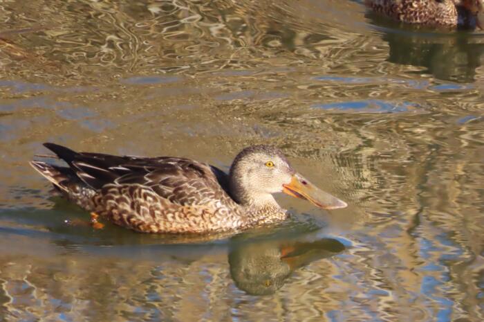 アイキャッチ画像はハシビロカモが羽を休めている多自然池