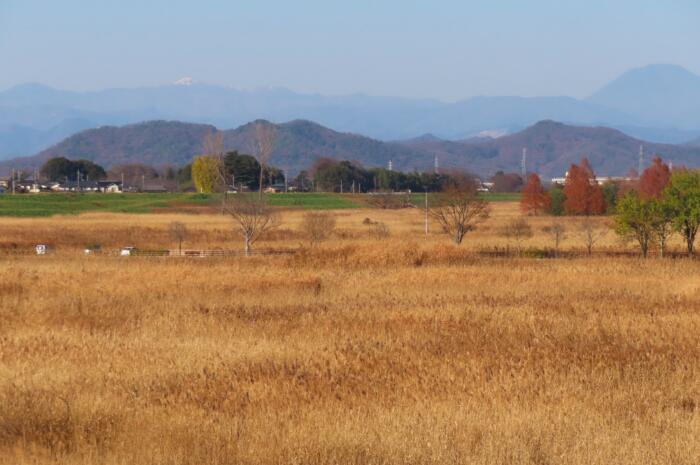 渡良瀬遊水地から三毳山を望みます、奥には日光連山も望めます