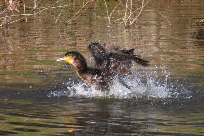 水浴びをして汚れた羽を綺麗にしている「カワウ」