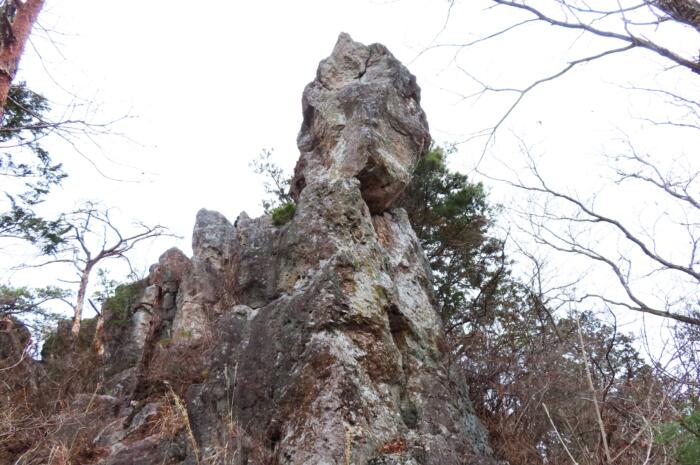 山頂直下から見上げる男抱山頂部の岩峰