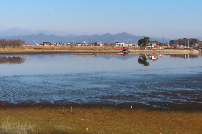 アイキャッチ画像は多々良沼公園たたらの杜エリアからいこいと花のエリアを望む、奥の森のなかは「鶉古城跡」です